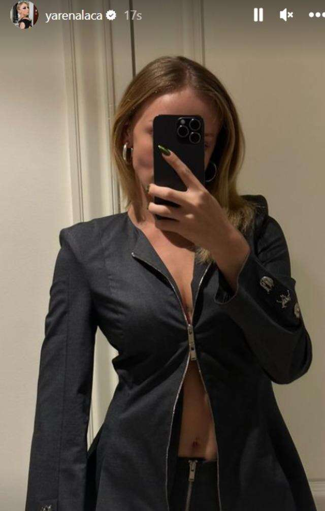 Yaren Alaca iddialı pozlarına bir yenisi daha ekledi ve siyah ceket-siyah pantolon kombiniyle dikkat çekti.