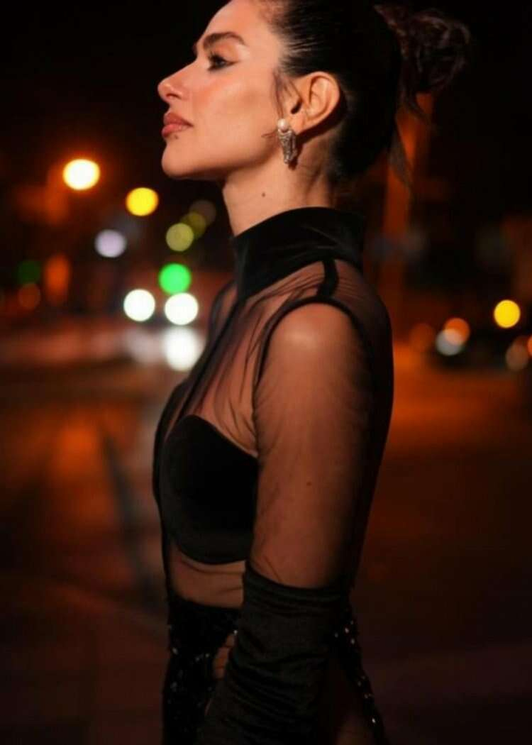 Geceye iddialı tarzıyla damga vuran Cavadzade transparan bir elbise giymeyi tercih etti. Siyah payetli elbisesiyle pozlar veren ünlü ismin göğüs dekoltesi de çok beğenildi.