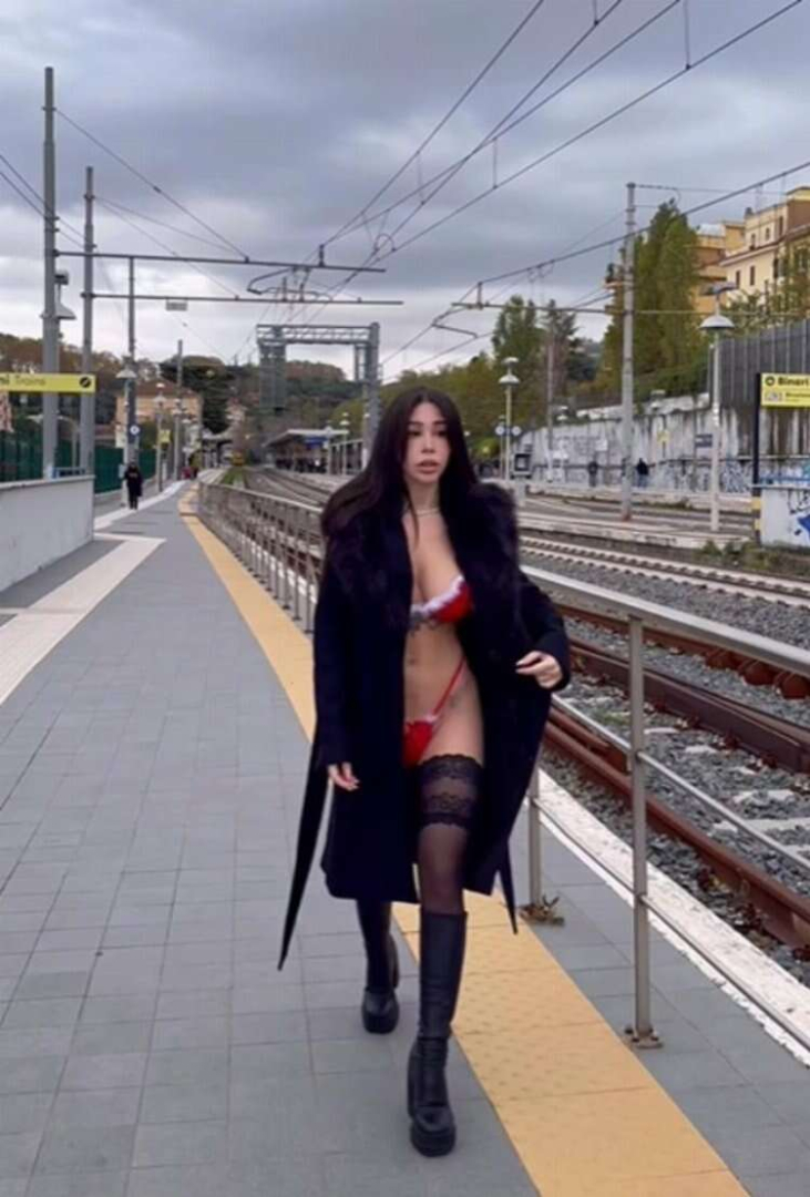 Sosyal medya kullanıcılarının ilgisi çeken paylaşımında Mucci siyah bir trençkotta çıktı. Ancak fenomen isim takipçileri için hazırladığı bir sürprizi vardı. Tren istasyonunda poz veren Mucci siyah uzun ceketinin içine iç çamaşırı giymeyi tercih etti ve o anları takipçileriyle paylaştı.