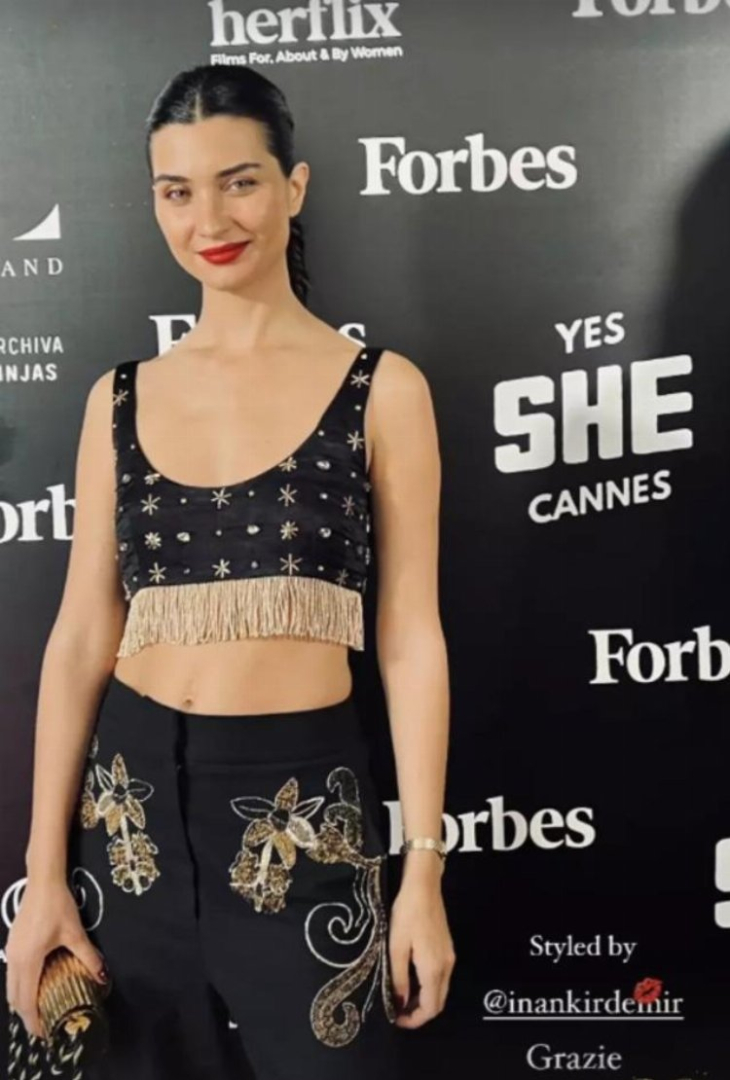 Hande Erçel, Pınar Deniz, Birce Akalay, Meryem Uzerli ve Dilan Çiçek Deniz gibi isimlerin katıldığı Cannes Film Festivali'ne Tuba Büyüküstün'de katıldı. Kırmızı halıda boy gösteren ünlü isim tarzı ise dillere düştü.