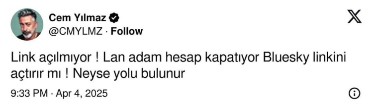 “Link açılmıyor! Lan adam hesap kapatıyor, Bluesky linkini açtırır mı! Neyse yolu bulunur.”