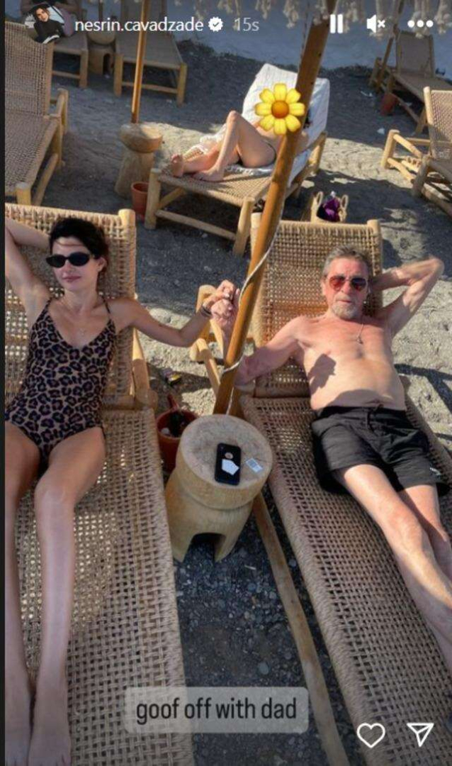 Üstsüz pozlarıyla gündem olmuştu! Nesrin Cavadzade plajda babasıyla poz verdi