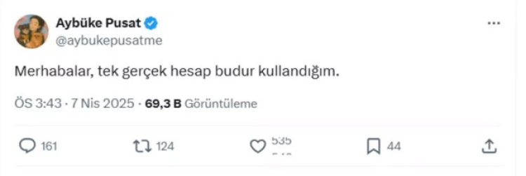 Gelişmelerin ardından günlerdir sessizliğini koruyan Pusat, ilk açıklamasını bambaşka bir konuda yaptı. Ünlü oyuncu, X hesabı açarak kullandığı tek hesabın bu olduğunu belirten bir paylaşım yaptı.