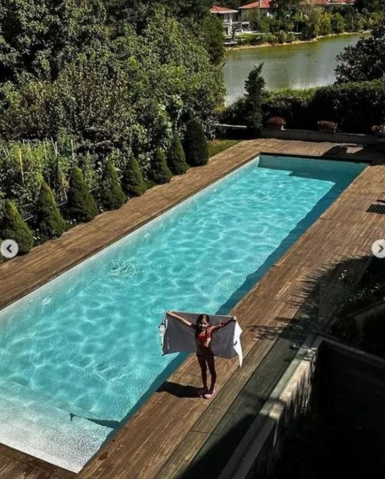Aylık 30 bin euro kirası olduğu belirtilen havuzlu villanın içinde yok yok... Doğayla iç içe bir konsepti olan villada özel bir yüzme havuzu, hobi bahçesi, geniş bir sinema salonu bulunuyor.