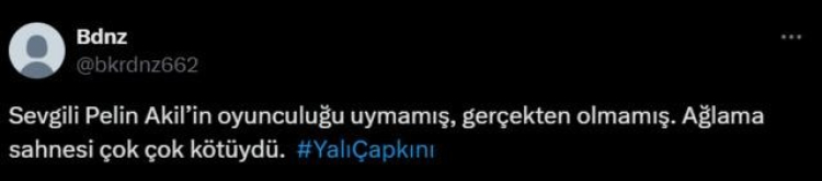 Yalı Çapkını dizisine yeni sezonda Diyar karakteriyle dahil olan ünlü oyuncu Pelin Akil'in dizinin yeni bölümündeki performansı gündem oldu. Akil'in ağladığı sahne diziye damga vurdu ve sosyal medyada beğenilmedi.