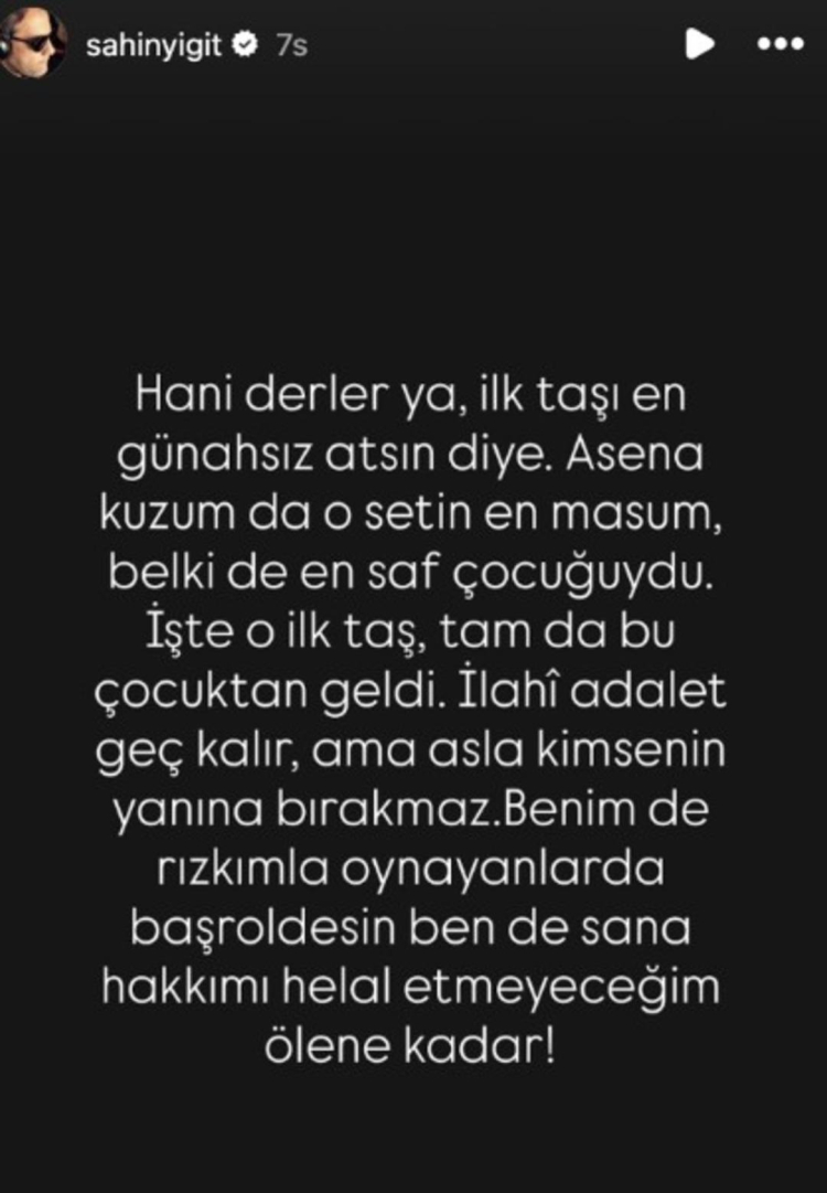 İşte o ilk taş, tam da bu çocuktan geldi. İlahî adalet geç kalır, ama asla kimsenin yanına bırakmaz. Benim de rızkımla oynayanlarda başroldesin, ben de sana hakkımı helal etmeyeceğim ölene kadar!'