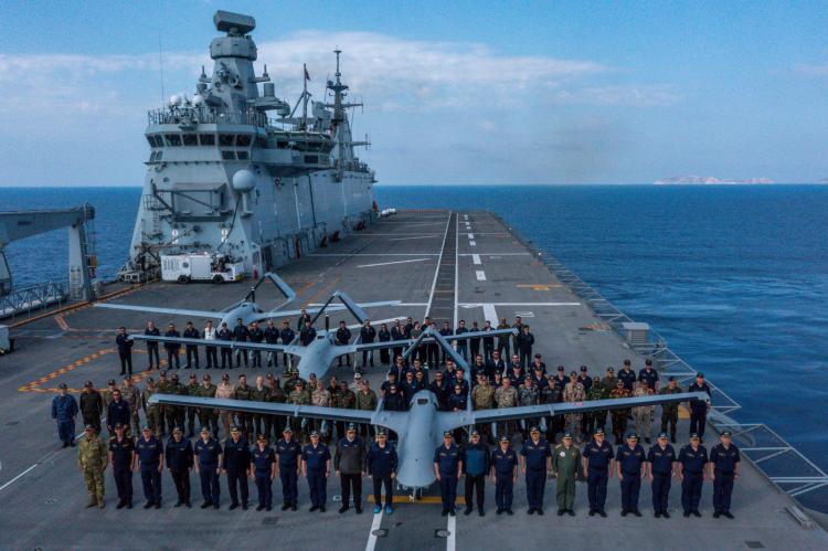 Türk Deniz Kuvvetleri tarafından 6-17 Mayıs tarihlerinde denizde, havada ve karada sürdürülen 'Deniz Kurdu 2/2025' tatbikatının 'Seçkin Gözlemci Günü' (SGG) kapsamında TCG Anadolu çok maksatlı amfibi gemisinde bulunan Kara Kuvvetleri Komutanı Orgeneral Selçuk Bayraktaroğlu, Hava Kuvvetleri Komutanı Orgeneral Ziya Cemal Kadıoğlu, Deniz Kuvvetleri Komutanı Oramiral Ercüment Tatlıoğlu, Savunma Sanayii Başkanı Haluk Görgün, BAYKAR Yönetim Kurulu Başkanı Selçuk Bayraktar açıklama yaptı.