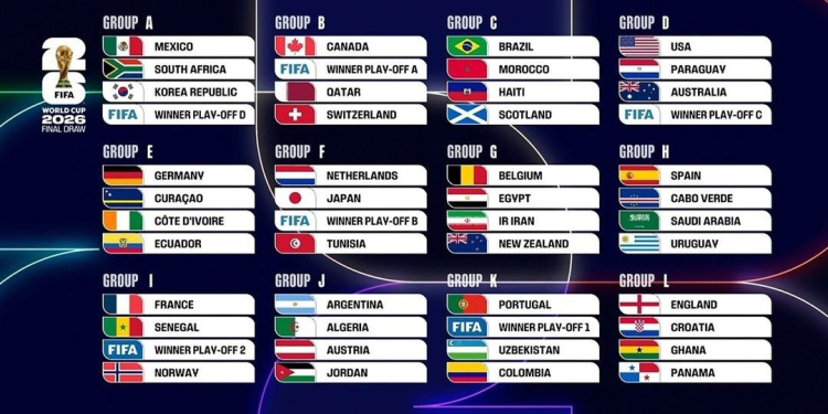 4.Torba: Ürdün, Yeşil Burun Adaları, Gana, Curaçao, Haiti, Yeni Zelanda, Avrupa Play-Off A (İtalya-Kuzey İrlanda / Galler-Bosna Hersek), Avrupa Play-Off B (Ukrayna-İsveç / Polonya-Arnavutluk), Avrupa Play-Off C (Türkiye-Romanya / Slovakya-Kosova) ve Avrupa Play-Off D (Danimarka-Kuzey Makedonya / Çekya-İrlanda Cumhuriyeti), FIFA Kıtalararası Play-Off Turnuvası 1 (Yeni Kaledonya-Jamaika / Demokratik Kongo) ve FIFA Kıtalararası Play-Off Turnuvası 2 (Bolivya-Surinam / Irak)