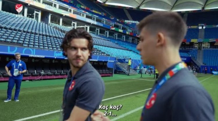 Paylaşılan videoda Arda Güler ile Ferdi Kadıoğlu arasında bir konuşma gerçekleşti. Arda Güler, Çekya maçını kastederek, "Yarın ne olur? Kazanır mıyız, berabere mi?" dediği görülüyor. Ferdi Kadıoğlu ise, "Sence? Kaç kaç?" cevabını veriyor. Bunun üzerine ise Arda Güler, "2-1" diyor ve bu tahminini tutturuyor.