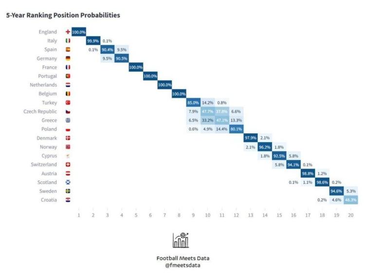 Football Meets Data verilerine göre; Galatasaray'ın Juventus'u, Samsunspor'un Shkendija'yı yenmesiyle 2027'de ŞL'ye direkt takım gönderme hakkımızı (ilk 10) koruma şansımız yüzde 99.2'ye yükseldi. Bu sonuçla birlikte önümüzdeki senelerde Şampiyonlar Ligi kontenjanı hakkımız büyü ölçüde devam ediyor.