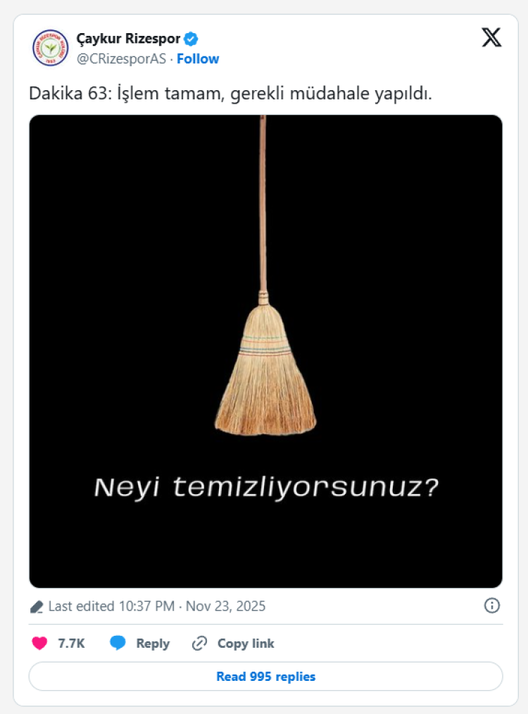 Trendyol Süper Lig'de Çaykur Rizespor ile Fenerbahçe karşılaştı. Karadeniz ekibi, zorlu mücadeleyi sosyal medyada başka bir boyuta taşıdı.