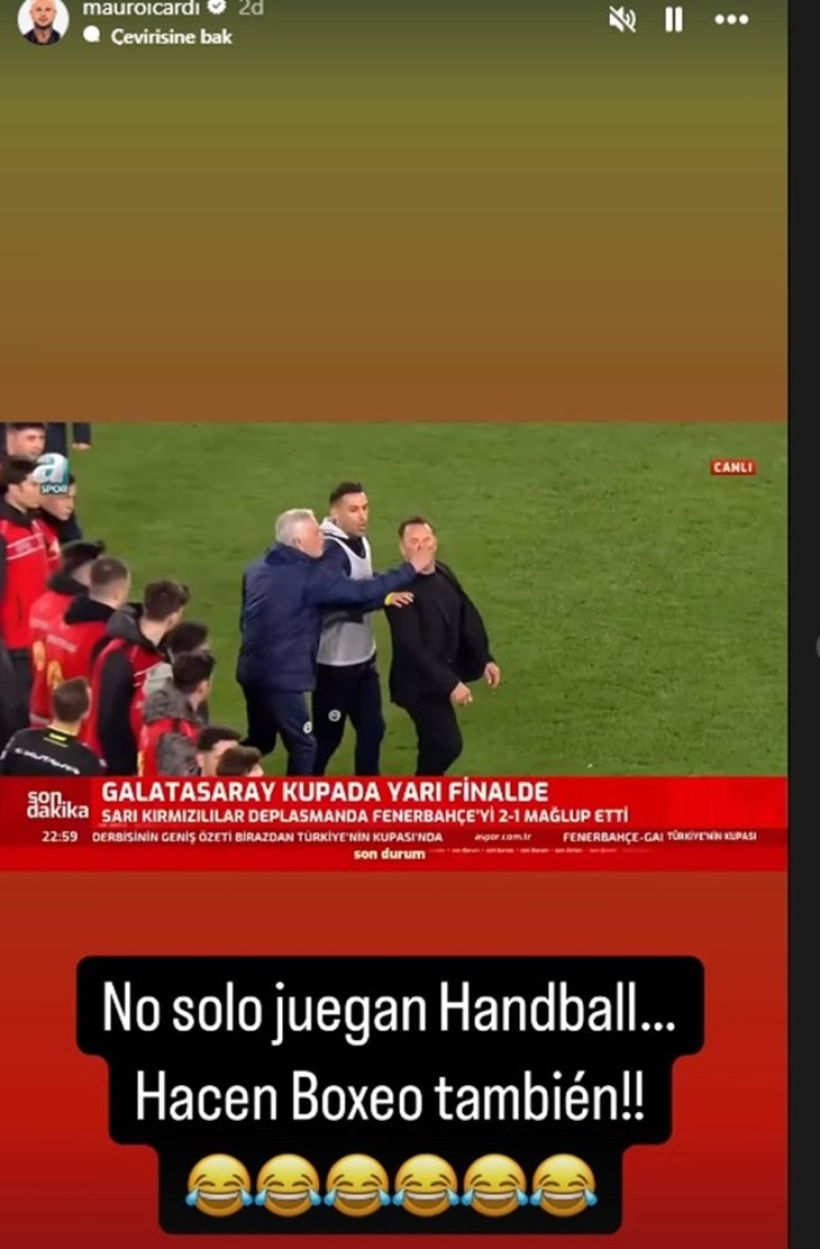 Icardi'nin paylaşımına düştüğü notta, "Sadece hentbol oynamıyorlar. Boks da yapıyorlar." ifadeleri yer aldı. Deneyimli golcü paylaşımına ayrıca kahkaha atan emojiler ekledi.