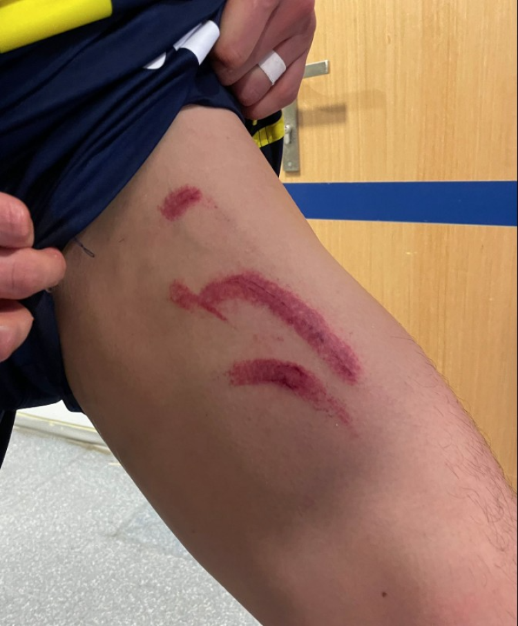 Bacağına aldığı sert darbeyle acılar içinde yerde kalan Edson Alvarez daha sonra oyuna devam etmiş, sarı-lacivertli futbolcunun bacağının son hali ise pozisyonun sertliğini ortaya koymuştu.