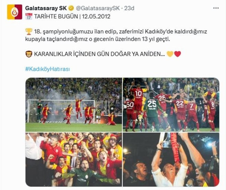 Fenerbahçe'nin ardından Galatasaray'dan da 12 Mayıs paylaşımı geldi.