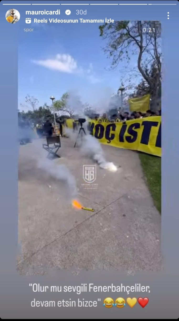 Arjantinli futbolcu, Fenerbahçeli taraftarların yönetime tepki gösterdiği bir haberden görüntü paylaştı. Söz konusu haberde, Fenerbahçeli taraftarların, "Ali Koç istifa" pankartı dikkat çekerken, Icardi bu paylaşımında, "Olur mu sevgili Fenerbahçeliler, devam etsin bizce." ifadelerini kullandı.
