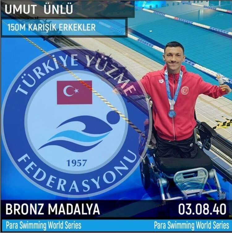 Açık yaş erkekler 150 metre karışık branşında ise Umut Ünlü, 03.08.40'lık zamanıyla bronz madalyanın sahibi oldu.