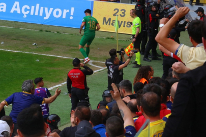 Karşılaşmanın 9. dakikasında ise Amed Sportif Faaliyetler'in kazandığı köşe vuruşunda taraftarlar, korner diğerinin olduğu bölgeye su şişesi attı.