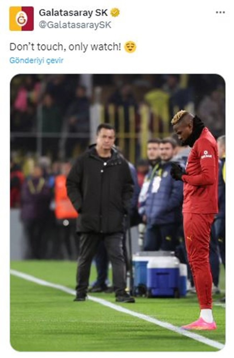 Sarı-kırmızılılar paylaşımına, "Dokunma, sadece izle" notunu düştü.