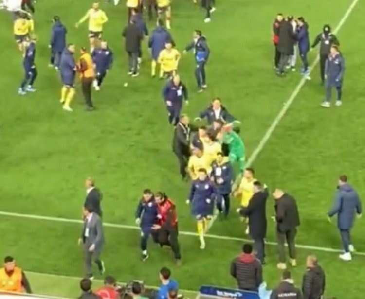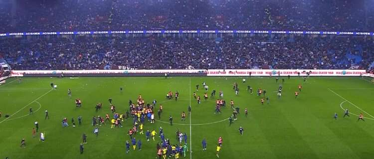 Süper Lig'in 30. haftasında Fenerbahçe Trabzonspor'u 3-2 mağlup ederken, karşılaşmanın son düdüğünün çalmasının ardından Trabzonsporlu taraftarlar sahaya inerek Fenerbahçeli futbolculara saldırdı.
