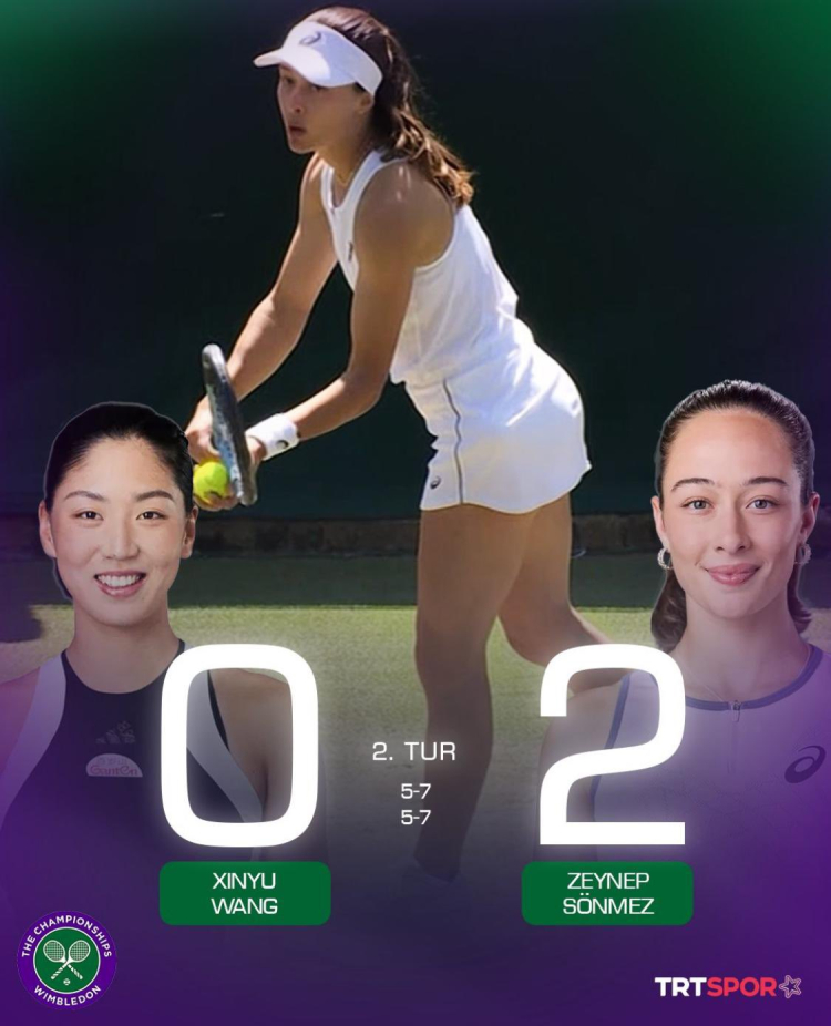 Wimbledon'da milli tenisçi Zeynep Sönmez, Çinli Xinyu Wang'i 2-0 yenerek 3. tura yükseldi.