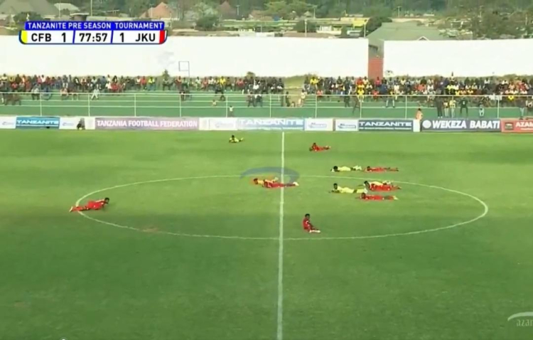 Yeşil sahalarda daha önce rastlanmayan bir olay yaşandı. Tanzanya'nın profesyonel liglerinde oynanan mücadeleyi maç esnasında arı sürüsü basınca futbolcular kurtuluşu ilginç bir yöntemde buldu.