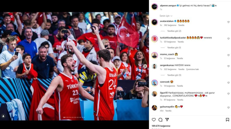 Karşılaşmanın ardından Alperen Şengün sosyal medya hesabından "İyi gelmez mi hiç deniz havası?" paylaşımında bulundu. Alperen Şengün'ün bu paylaşımı saatler içerisinde yüz binlerce beğeni aldı.