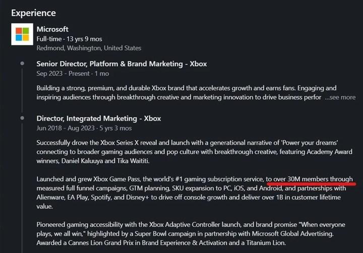 Microsoft'un Xbox Game Pass hizmetinin tam olarak ne kadar abonesi olduğu hakkında kesin bilgiler bulunmuyor. Öte yandan Xbox kıdemli pazarlama direktörü Craig McNary'nin LinkedIn profilindeki eski bir gönderiye göre, Xbox Game Pass'in 30 milyondan fazla abonesi var. Ancak bu sayı daha yüksek olabilir.