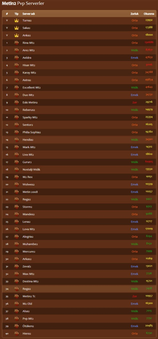 İŞTE GÜNCEL METİN2 PVP SUNUCULARI...