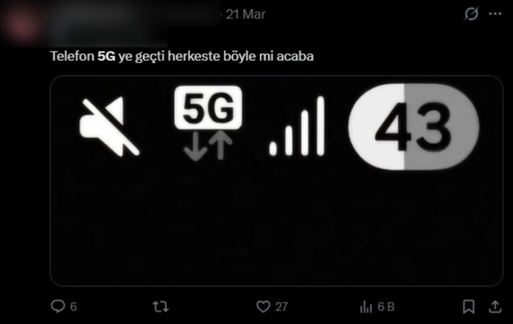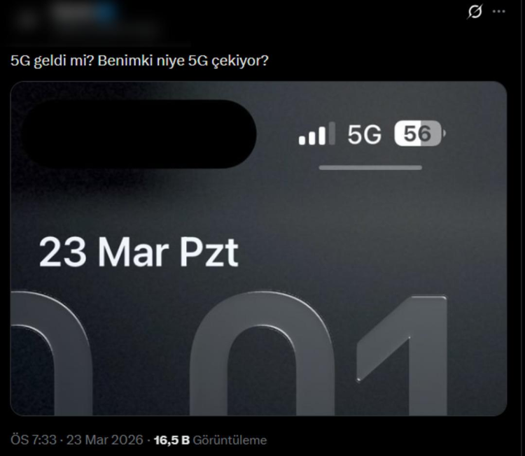 Dün akşam saatlerinden itibaren X (Twitter) ve Instagram üzerinden yapılan paylaşımlarda, bazı kullanıcılar, cihazlarının 5G şebekesine bağlandığını belirtti.