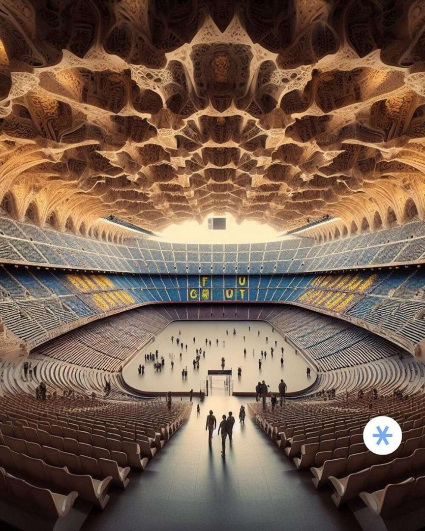 Yapay zeka, Barcelona'nın stadı Camp Nou'yu şehrin en ünlü Katalan mimarı Antoni Gaudi tarafından tasarlanmış gibi yeniden yarattı. Sosyal medyada paylaşılan görüntüler binlerce beğeni aldı.