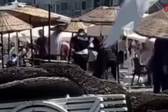 Bursa'da sahibinin elinden kaçan ve araçlar tarafından kıstırıldığında vatandaşın sopa ile yere vurmasına sinirlenen kızgın boğa, onlarca vatandaşı önüne katınca İspanyol arenasını aratmadı.