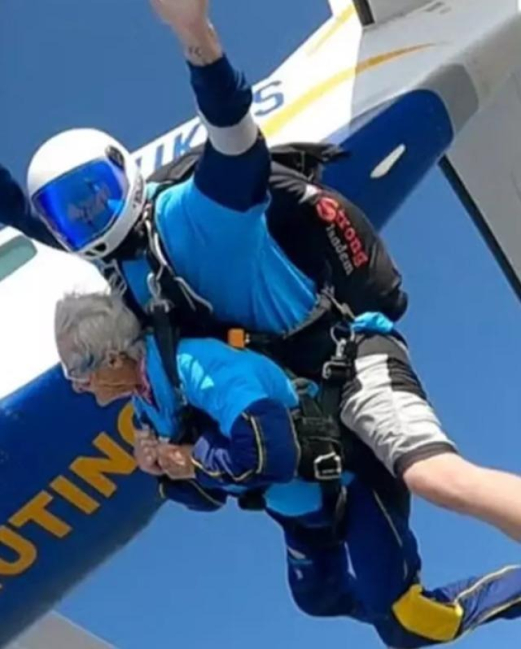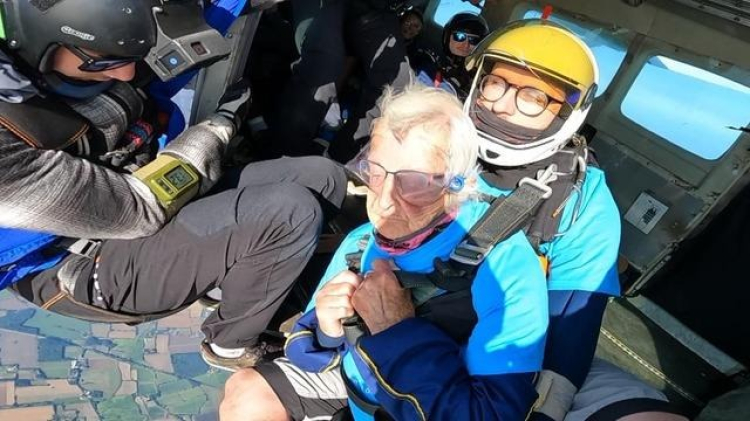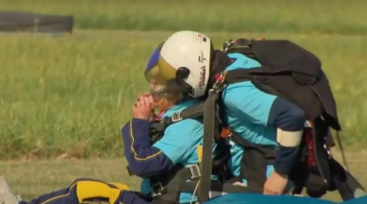 102'nci yaş gününü paraşütten atlayarak kutladı!