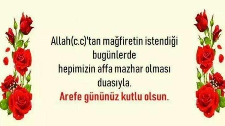 "Küskünlerin barıştığı, sevenlerin bir araya geldiği, rahmet ve şefkat dolu günler dileğiyle. Arefe gününüz kutlu olsun."