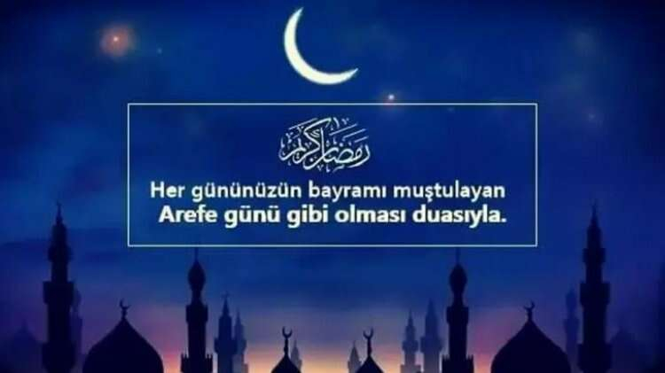 "En güzel bayramlara hep birlikte sağlıkla ve huzurla erişebilmek duasıyla. Arefe gününüz mübarek olsun."