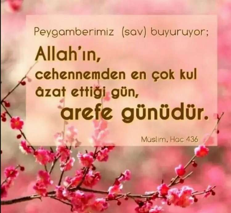 Ebu Hureyre (Allah Ondan razı olsun)'den rivayet edildiğine göre Rasûlullah (sallallahu aleyhi vesellem) şöyle buyurdu:"Allah'ın cehennemden en fazla kulunu âzâd ettiği gün Arefe günüdür."(Müslim, Hac, 436)