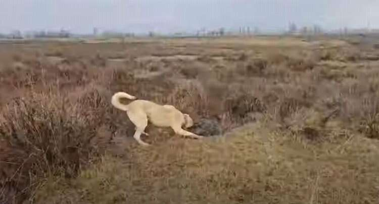 Erzincan'da çobanlık yapan Mert Yılmaz, sürüsünü otlattığı sırada köpeklerinden birinin bir şeyle boğuştuğunu fark etti. Köpeğinin domuzla karşı karşıya geldiğini düşünen Yılmaz, hızla yanlarına gitti.