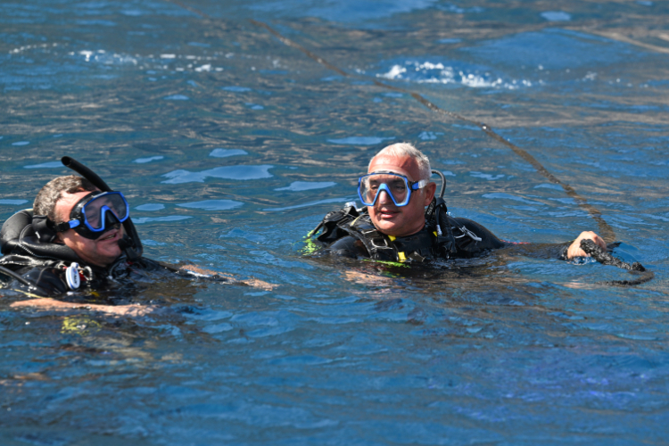 Brifingin ardından dalış hazırlığı, ekipman ve güvenlik önlemleri tamamlandıktan sonra Bakan Ersoy, Ceylan, Öniz, kamera asistanı Taner Şahakalkan ve diğer dalış ekibi yeşilin, mavinin ve tarihi zenginliklerin kucaklaştığı noktaya dalış yaptı.