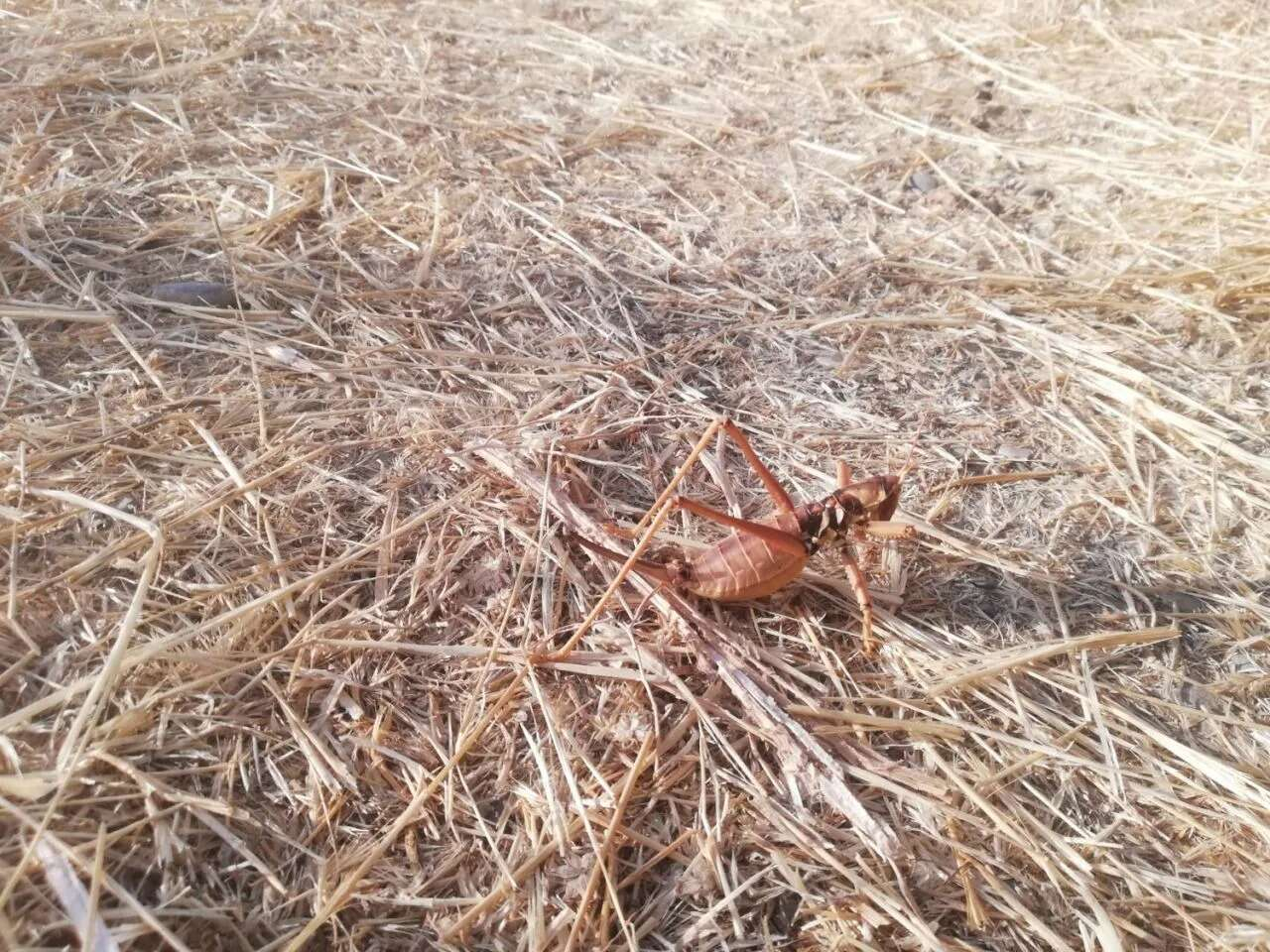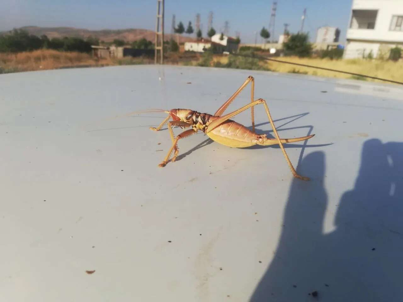 Tarım ve Orman İlçe Müdürü Metin Kaplan, uzunluğu 20-25 santimetreye kadar ulaşan bu çekirge türünün arpa ve buğday hasadından sonra yoğun görüldüğünü belirterek, "Ekinlerin biçilmesiyle yiyecek sıkıntısı çeken çekirgeler yerleşim yerlerine geliyor. Bu, özellikle geceleri avlanan etçil çekirge." ifadelerini kullandı.