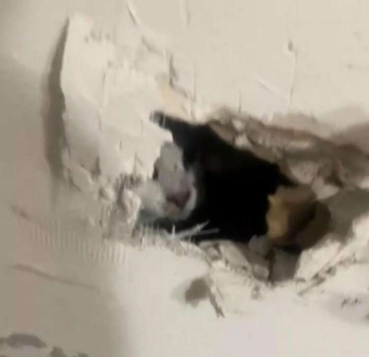 Kadının duvarını yenileyen dikkatsiz işçiler, Pensilvanya'daki dairede tadilat yapıyorlardı ve kadının sevgili kedisini yanlışlıkla duvara mühürlediklerinden habersizlerdi. 2,4 milyondan fazla izlenen videoda Jay'in polisle telefonda konuşurken çılgınca sıvayı bıçakla deldiği anlar görüldü. Bu sırada kedisi, geçilebilecek kadar büyük olmayan delikten çaresizce bakıyor.