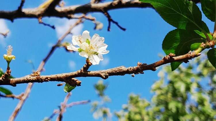 45-50 yıllık erik ağacının dalları bembeyaz çiçek açarken, bazı çiçekler meyve vermeye başladı. Doğduğu günden bu yana aynı evde oturduğunu söyleyen ev sahibi 81 yaşındaki Ahmet Göçmen, ilk defa böyle bir olayla karşılaştığını anlattı.
