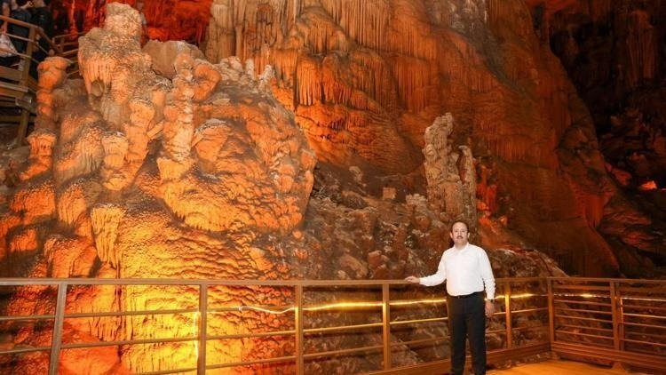 1999 yılında keşfedilmesine rağmen, mağaradaki insanoğlu izlerinin 10-11 bin yıl kadar öncesine dayandığını ifade eden Vali Pehlivan, "Mağaranın oluşumu kimi araştırmacılara göre 30 milyon kimi araştırmacılara göre ise 40-50 milyon yıl geçmişe gidiyor. Oluşumuyla ilgili tespit ve değerlendirmeler yapılırken, buzul çağında hidrolojik hareketlenmenin olduğu o dönemde Akdeniz'in önce yükseldiği daha sonra da çekildiği, çekilmesiyle birlikte buradaki bu boşluğun ortaya çıktığı ve binlerce yıl geçen zaman içerisinde sarkıt ve dikitlerin oluştuğu ifade ediliyor. Mağaramızın en önemli özelliklerinden birisi de içinde bir göl olmasıdır. Hemen arkamızda gördüğünüz ve Aynalı Göl olarak bilinen bir göl var. Burası mağaranın dip kısmında bulunuyor. Derinliği 47 metreye kadar ulaşıyor. Bu göle kayalardaki kırıklardan, denizden de belli ölçüde sızıntı olmakla birlikte ağırlıklı olarak yağmur sularının süzülüp birikmesiyle oluşmuş ve kısmen sodalı bir tatlı su hüviyetine sahiptir. Aynalı göl, mağaraya ayrı bir değer katan ve daha da cazip hale getiren özelliklerinden birisidir. Her mağarada sarkıtlar, dikitler vardır. Ama mağaranın içinde Aynalı Göl'ün oluşu buraya ayrı bir değer, ayrı bir boyut katıyor" diye konuştu.