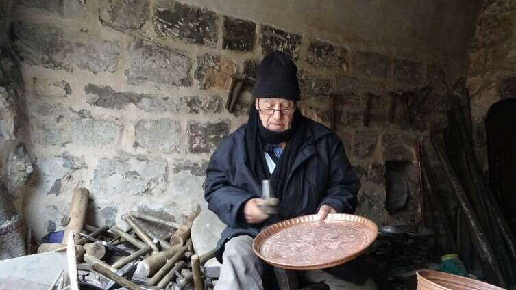 Mardin'de 73 yıldır bakırcılık mesleğini icra eden 80 yaşındaki Selahaddin Akalpoğlu, 67 yıl önce hafız oldu.