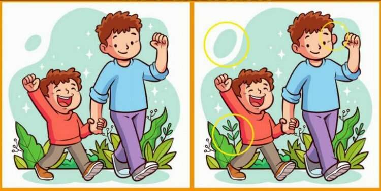 Arkaplandaki yıldızlı yeşil alana, babanın kulağına ve yerdeki yapraklara dikkat edenler zorlanmadan 3 farkı bulmayı başardı.
