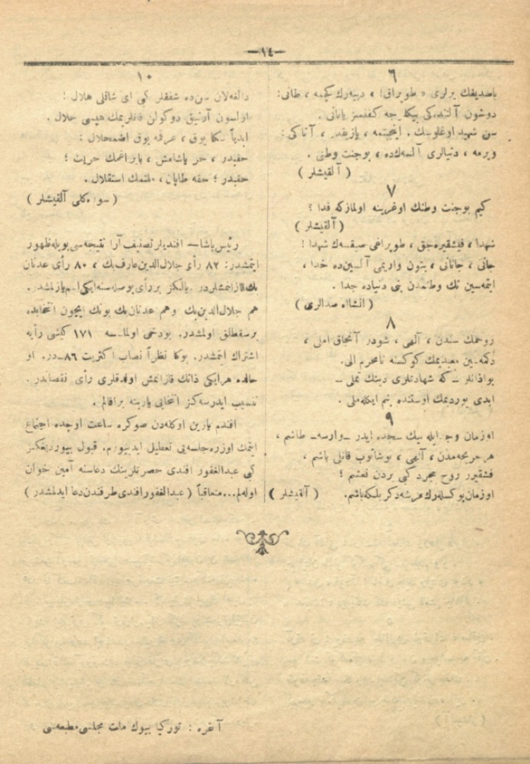 "Vekalet, yapmış olduğu tetkikatta fevkalade kuvvetli bir şiir aramak lüzumunu hissettiği için ben şahsen Mehmet Akif Beyefendi'ye müracaat ettim ve kendilerinin de bir şiir yazmalarını rica ettim. Kendileri çok asil bir endişeyle tereddüt gösterdiler. Bilirsiniz ki bu şiirler için bir ikramiye vaat edilmiştir, halbuki bunu kendi isimlerine takrip etmek arzusunda bulunmadıklarını ve bundan çekindiklerini izhar ettiler. Ben şahsen müracaat ettim. 'Lazım gelen tedbiri alırız ve icap eden ilanı yaparız' dedim. Bu şartla büyük dini şairimiz bize fevkalade nefis bir şiir gönderdiler. Diğer 6 şiirle beraber nazarı tetkikinize arz edeceğiz."
