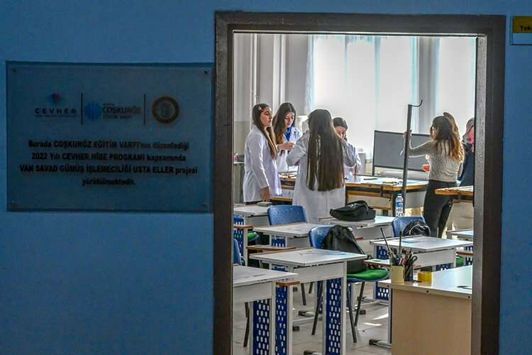Merkezi Bursa'da bulunan Coşkunöz Eğitim Vakfının (CEV) hibe programı kapsamında Van'da 16 kız öğrenciye, Urartulardan bugüne ulaşan ve kentte sayıları gittikçe azalan atölyelerde yaşatılmaya çalışılan savat işlemeciliği eğitimi verildi.