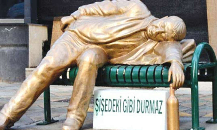 Aynı belediye, şimdi de 'barlar sokağı' diye bilinen mıntıkaya 'sarhoş adam heykeli' koymuş.