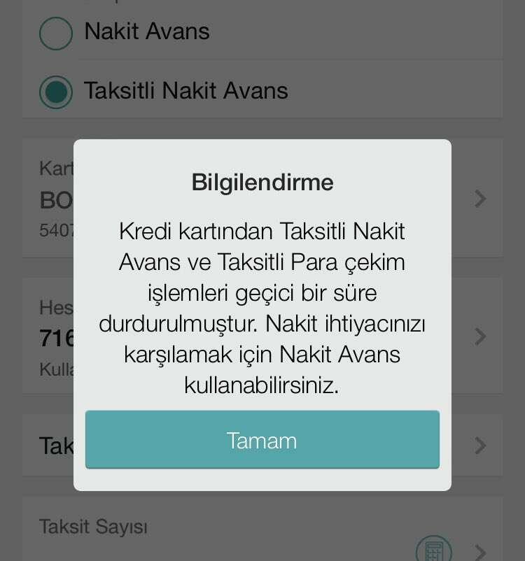 "Kredi kartından taksitli nakit avans ve para çekim işlemleri durdurulmuştur"