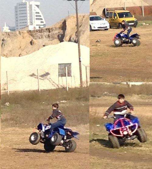 Bu çocuk ailesinden aldığı harçlığıyla kiraladığı atv ile kasksız bir şekilde boş arazide büyük bir süratle tur atıyor, akrobasi yapıyordu.
