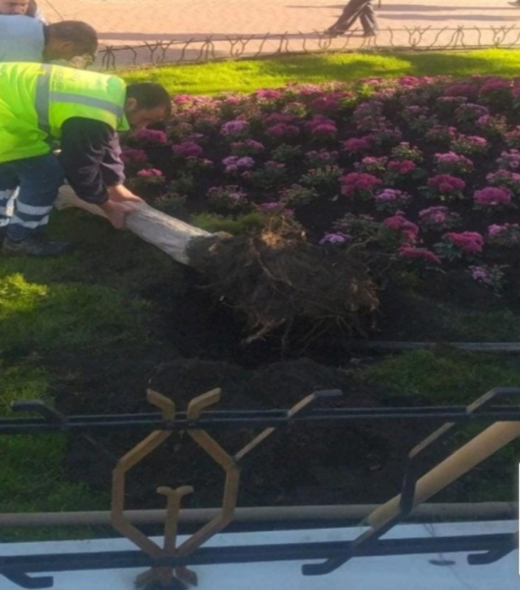 Mevsimsel dönemlerde çiçek dikimleri ve kuruyan ağaç değişimleri planlı şekilde sürdürülmekte olup, oya ağacı değişimi 30.10.2025 tarihi itibarıyla tamamlanmıştır.
