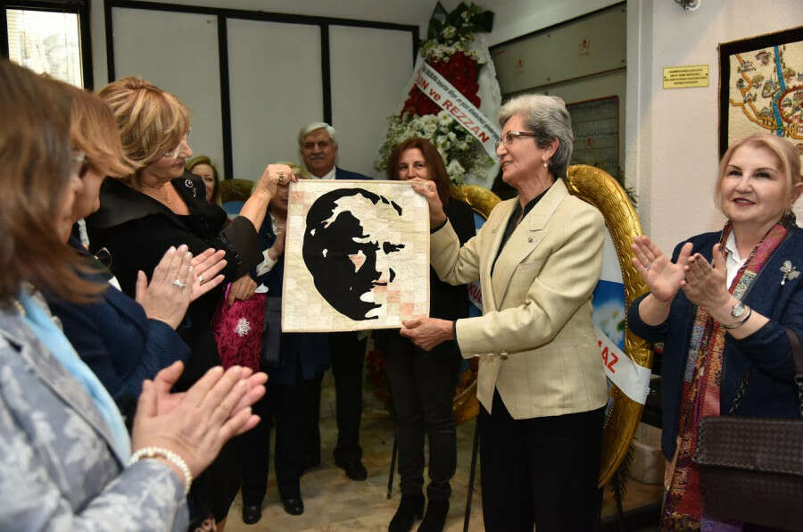 Sergi açılışını Prof. Dr. Ulviye Özer yaptı ve Özer'e grup üyelerinin topluca hazırladığı güzel bir Atatürk portresi sunuldu.